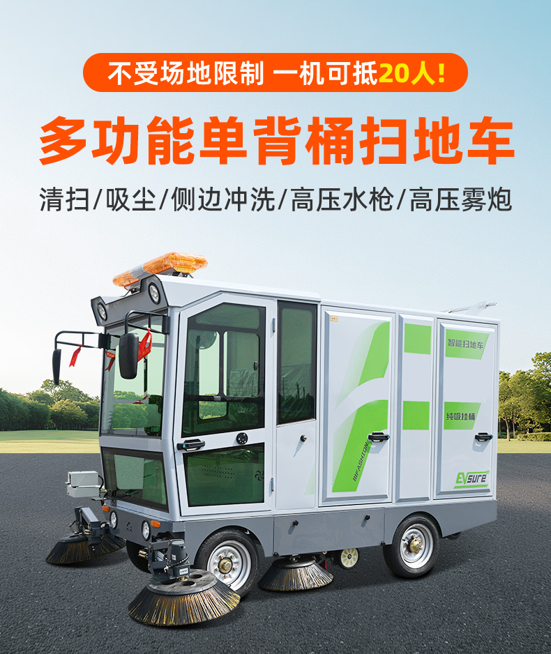 莱特LT-G86型全封闭四轮驾驶式扫地车,此车辆为纯吸款高性能车辆、无滚刷结构,使用效果更稳定。车辆具备智能语音系统,配备高压清洗和高压雾炮功能,清扫宽度2450mm,满电工作时间为3-5小时,工作效率30000㎡/h,采用的是特种车专用磷酸铁锂电池,配置长度4米可拆卸手持吸管,吸净率高,作业速度快。后置240L标准垃圾桶,收集满灰尘垃圾之后,可以直接更换垃圾桶,效率高,无需人工倾倒垃圾。高压雾炮射程可达10米以上,可对作业环境高效的降尘,还可以用于绿植养护和环境消杀。高压水枪可以对地面顽固污渍进行清洁,还可以冲洗路牙石,为绿植浇水,工作之余,还可以用高压水枪清洗车辆。应用场景为:厂区、车间、公园、街道、物业小区、码头、学校、机场等需要大面积清扫的区域区域。